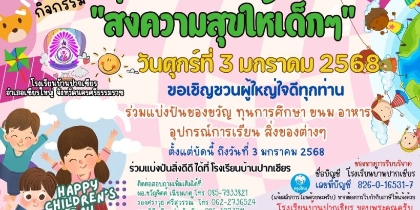 กิจกรรม”ส่งความสุขให้เด็กๆ” Posted on 19 ธันวาคม 2024 by 80030015 เมนูนำทาง เรื่อง « แสดงความยินดีกับโรงเรียนบ้านปากเชียร กับการแข่งขันงานศิลปหัตถกรรมนักเรียน ระดับกลุ่มเครือข่ายเชียรใหญ่1 ปี2567งานศิลปหัตถกรรมนักเรียน ครั้งที่ 72 ปีการศึกษา 2567 »
