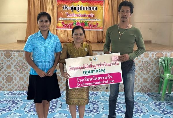 มอบเงินปัจจัยพื้นฐานนักเรียนยากจน (ทุนยากจน) (กลุ่มใหม่)แก่นักเรียนชั้นประถมศึกษาปีที่ 1-6 จำนวน 24 คน คนละ 500 บาท คิดเป็นเงิน 12,000 บาท (หนึ่งหมื่นสองพันบาทถ้วน) Posted on 11 ตุลาคม 2024 by 80030018 เมนูนำทาง เรื่อง « ประกาศโรงเรียนวัดสระแก้ว เรื่อง “ ปิดเรียนภาคเรียนที่ 1 และเปิดภาคเรียนที่ 2 ปีการศึกษา 2567 ”การจัดค่ายอุตสาหกรรมเกษตรเพื่อชนบท ครั้งที่ 26 ระหว่างวันที่ 30 ตุลาคม – 1 พฤศจิกายน 2567 ที่ได้ร่วมแรงร่วมใจกันพัฒนาปรับปรุงสภาพแวดล้อมของโรงเรียนวัดสระแก้ว »