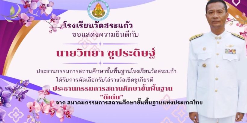 ขอแสดงความยินดีกับ “นายวิทยา ชูประดิษฐ์ ประธานกรรมการสถานศึกษาขั้นพื้นฐานโรงเรียนวัดสระแก้ว” ได้รับการคัดเลือกให้ได้รับโล่รางวัลเชิดชูเกียรติ “ ประธานกรรมการสถานศึกษาขั้นพื้นฐาน” “ดีเด่น” ประจำปี 2567 Posted on 24 เมษายน 2025 by 80030018 เมนูนำทาง เรื่อง « ภาพบรรยากาศของวันที่ห้า การเรียนปรับพื้นฐานภาษาอังกฤษเพื่อเน้นทักษะการสื่อสารด้วยภาษาอังกฤษโดยครูชาวต่างชาติให้กับนักเรียนช่วงปิดภาคเรียน (English Course) เป็นระยะเวลา 10 วัน ระหว่างวันที่ 17 เมษายน – 30 เมษายน 2568 เรียนตั้งแต่เวลา 08.30 น. – 11.30 น. ณ โรงเรียนวัดสระแก้วขอแสดงความยินดีกับ “นางสาววิภาวดี จันทร์ทอง ผู้อำนวยการโรงเรียนวัดสระแก้ว” ได้รับการคัดเลือกให้ได้รับโล่รางวัลเชิดชูเกียรติ “ กรรมการและเลขานุการสถานศึกษาขั้นพื้นฐาน” “ดีเด่น” ประจำปี 2567 »