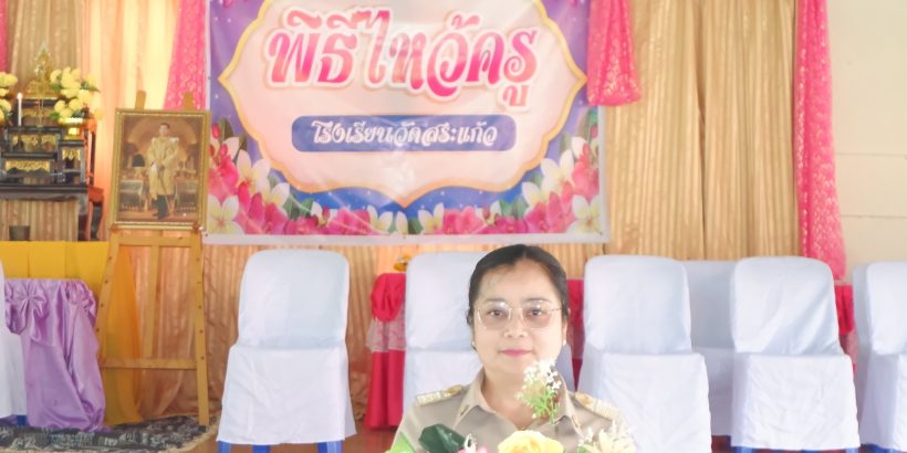 ได้จัดพิธีไหว้ครู โดย นางสาววิภาวดี จันทร์ทอง ผู้อำนวยการสถานศึกษาโรงเรียนวัดสระแก้ว เป็นประธานในพิธีไหว้ครู