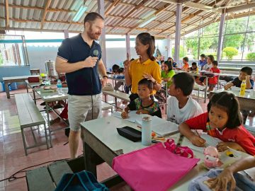 ภาพบรรยากาศของวันที่เก้า การเรียนปรับพื้นฐานภาษาอังกฤษเพื่อเน้นทักษะการสื่อสารด้วยภาษาอังกฤษโดยครูชาวต่างชาติให้กับนักเรียนช่วงปิดภาคเรียน (English Course) เป็นระยะเวลา 10 วัน ระหว่างวันที่ 17 เมษายน – 30 เมษายน 2568 เรียนตั้งแต่เวลา 08.30 น. – 11.30 น. ณ โรงเรียนวัดสระแก้ว