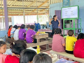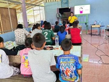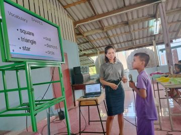 ภาพบรรยากาศของวันที่สี่ การเรียนปรับพื้นฐานภาษาอังกฤษเพื่อเน้นทักษะการสื่อสารด้วยภาษาอังกฤษโดยครูชาวต่างชาติให้กับนักเรียนช่วงปิดภาคเรียน (English Course) เป็นระยะเวลา 10 วัน ระหว่างวันที่ 17 เมษายน – 30 เมษายน 2568 เรียนตั้งแต่เวลา 08.30 น. – 11.30 น. ณ โรงเรียนวัดสระแก้ว