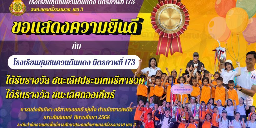 ผลการแข่งขันกิจกรรมกีฬาเกาะขันธ์เกมส์ ณ สนามโรงเรียนชุมชนควนดินแดง มิตรภาพที่ 173 Posted on 26 มิถุนายน 2025 by 80030042 เมนูนำทาง เรื่อง « ประมวลภาพกิจกรรมกีฬาเกาะขันธ์เกมส์ ณ สนามโรงเรียนชุมชนควนดินแดง มิตรภาพที่ 173แห่เทียนพรรษาเนื่องในวันเข้าพรรษา ณ วัดควนดินแดง »