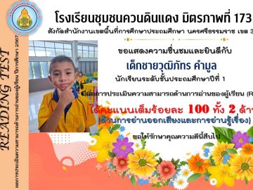 ผลการสอบระดับชาติการประเมินความสามารถด้านการอ่านของผู้เรียน (RT: Reading Test) ระดับชั้นป.1