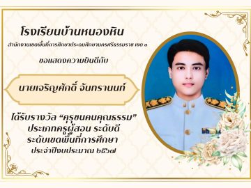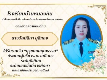 ขอเเสดงความยินดีกับ นางวัลย์ลิกา มุสิแดง ผู้อำนวยการโรงเรียนบ้านหนองหิน ได้รับรางวัล “คุรุชนคนคุณธรรม” ประเภทผู้บริหารสถานศึกษา ระดับดีเยี่ยม