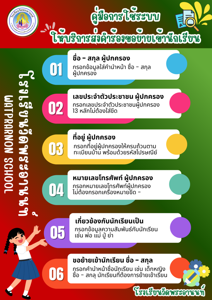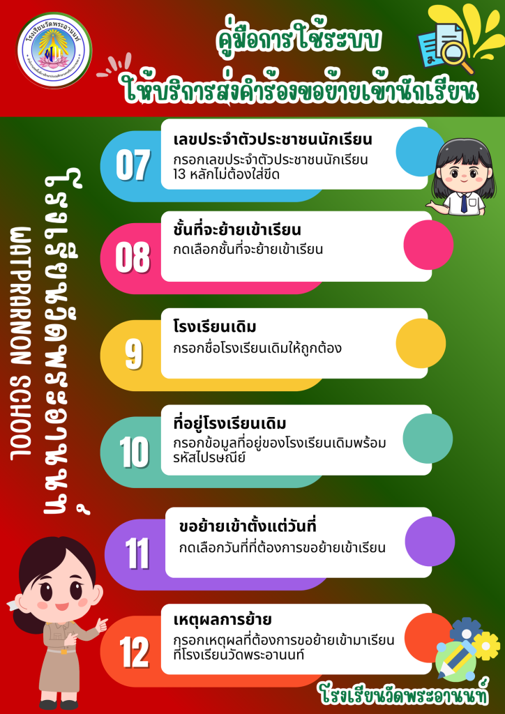 รายละเอียดวิธีใช้ระบบให้บริการส่งคำร้องขอย้ายเข้านักเรียน